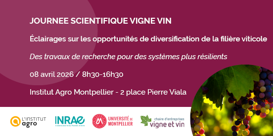 Cet évènement est soutenu financièrement par la chaire d'entreprises vigne et vin, L'Institut Agro, INRAE et l'Université de Montpellier.